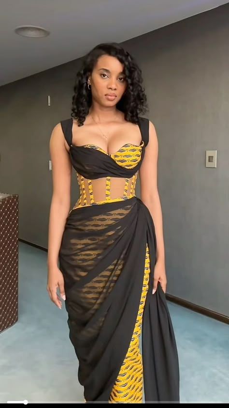 Yellow and Deep Blue Ankara Fashion Design Inspiration Orange